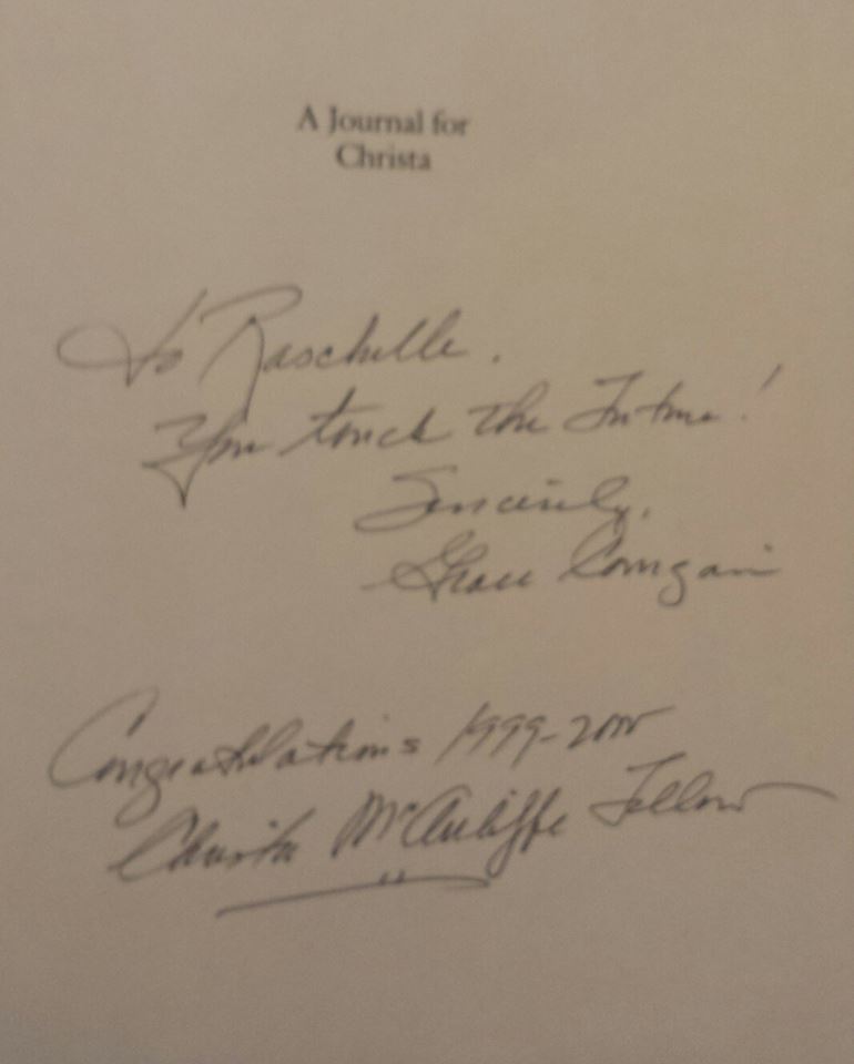 On that particular day, I didn’t know very much about Christa McAuliffe. However, 14 years later I was shaking her mother’s hand in Washington D.C. She spoke kindly to me and thanked me for my years of teaching. Grace George Corrigan smiled as she autographed the book she wrote in honor of her daughter, A Journal For Christa. I remember the awe I felt, listening to her speak of the memories of this special mom, wife, educator, astronaut… the goose bumps peppering my skin. Christa, indeed, was one of those rare gems many aspire to be like. She left a legacy.